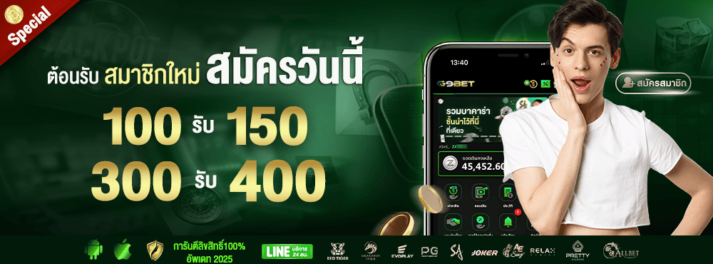 - โปรสำหรับสมาชิกใหม่ ฝากครั้งแรก 300 บาท รับโบนัสฟรี 100 บาท